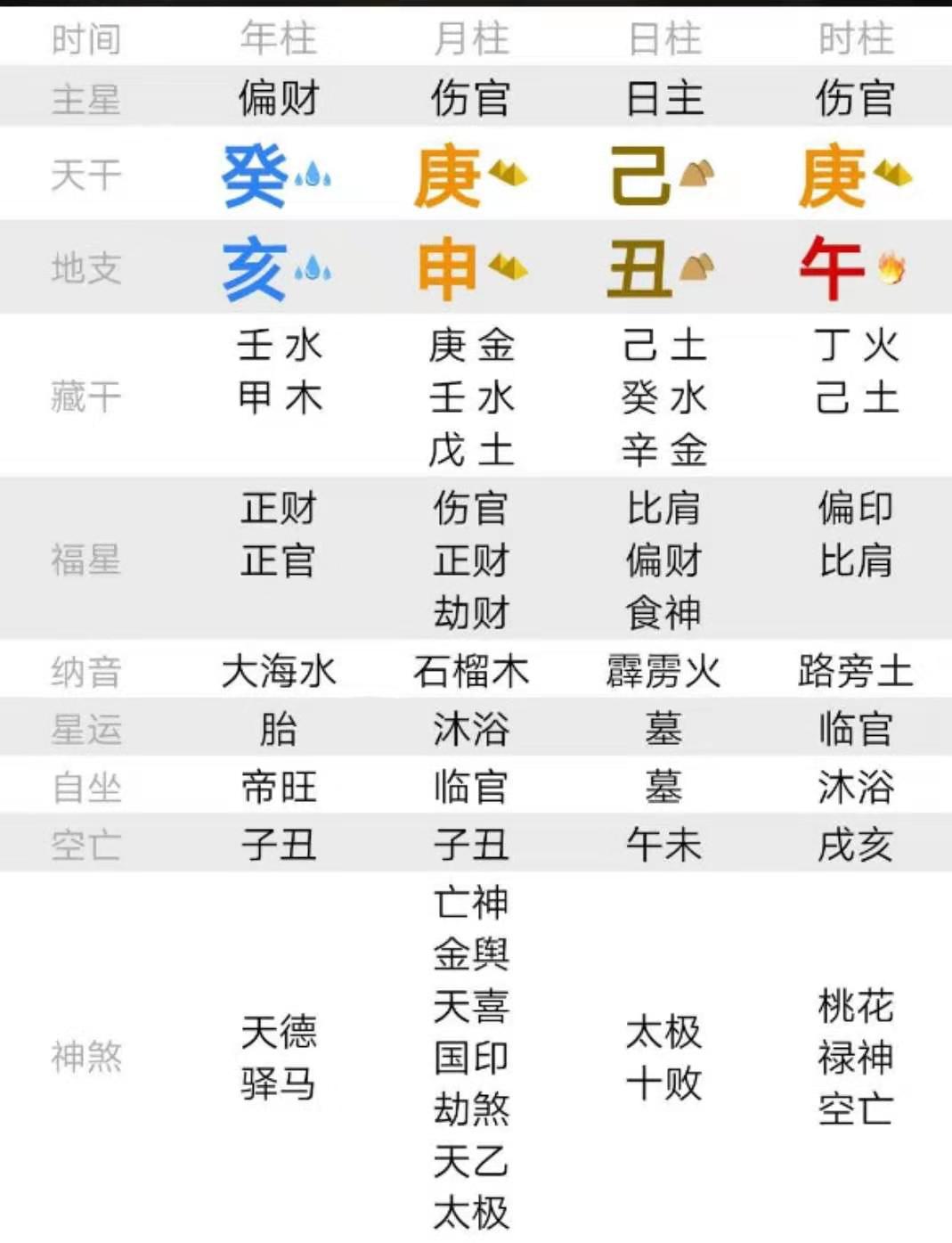 全局只有午火一个为阳,视为支衡点,命盘午亥合就是水和火的事情,所以水火年能结婚